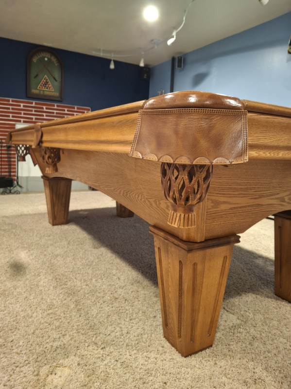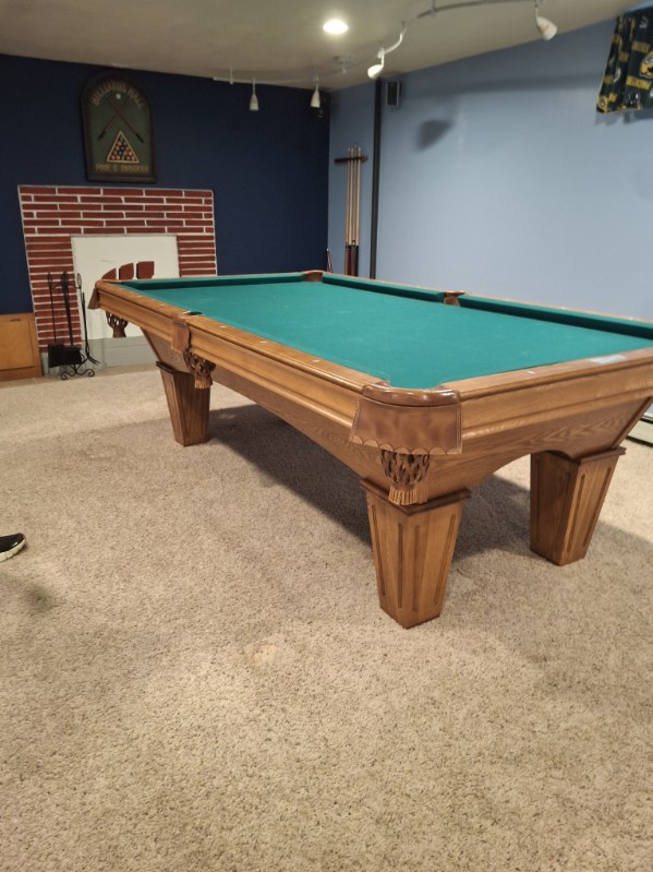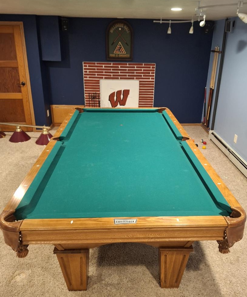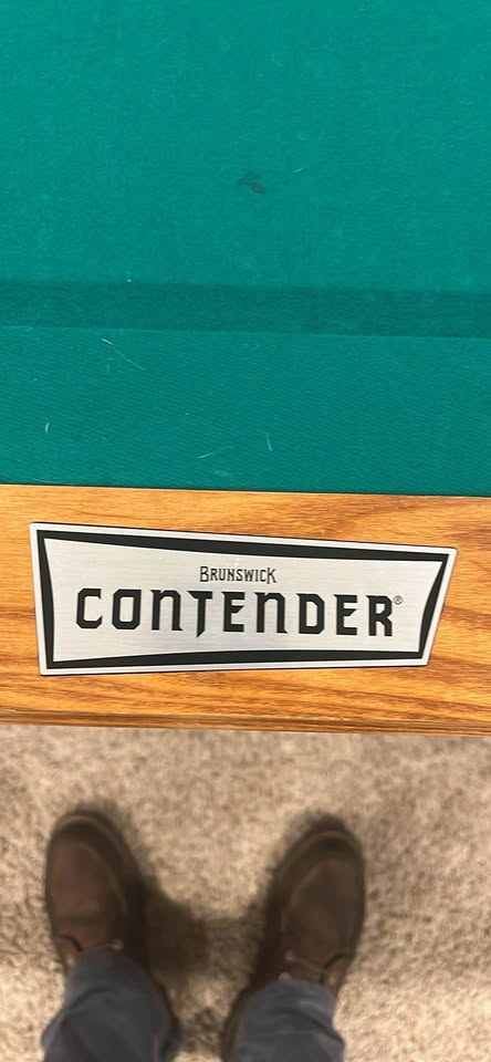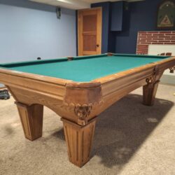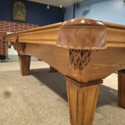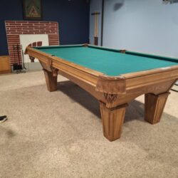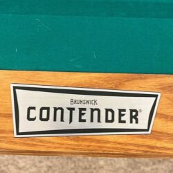 Beautiful 8ft Brunswick Contender pool table with a 3-piece slate top, square legs, and a rich oak finish. Stunning furniture-quality design with excellent durability and smooth, accurate play. A warm, classic centerpiece that fits perfectly into any home — ready for delivery.